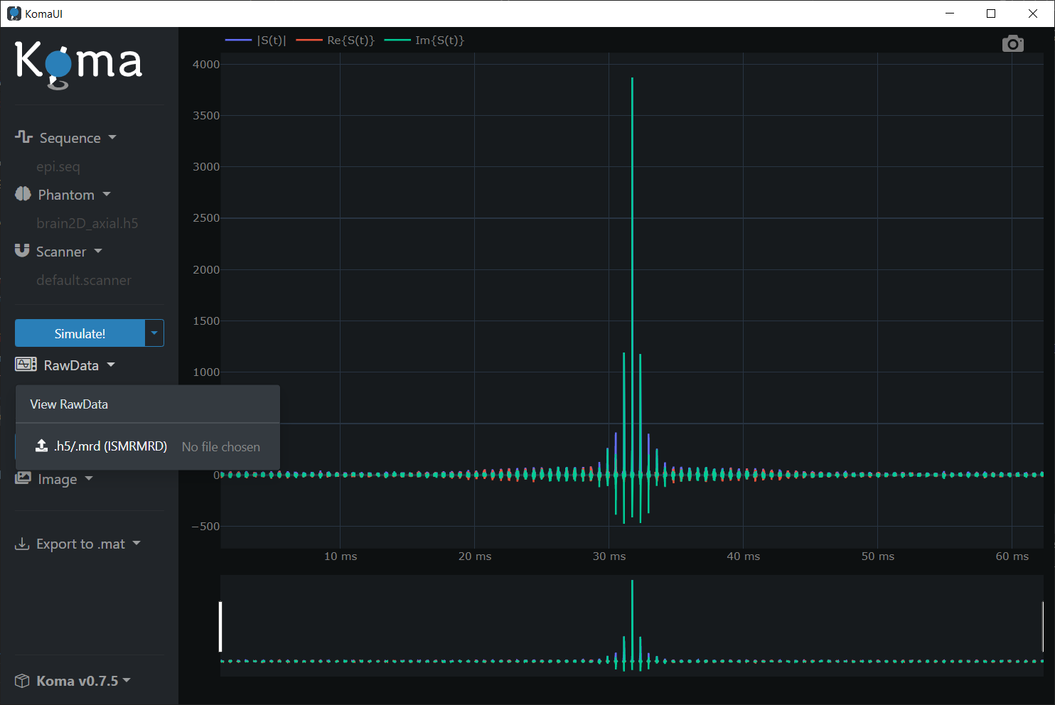 Once the inputs are loaded in RAM, it is possible to perform the simulation to get the Raw Signal.