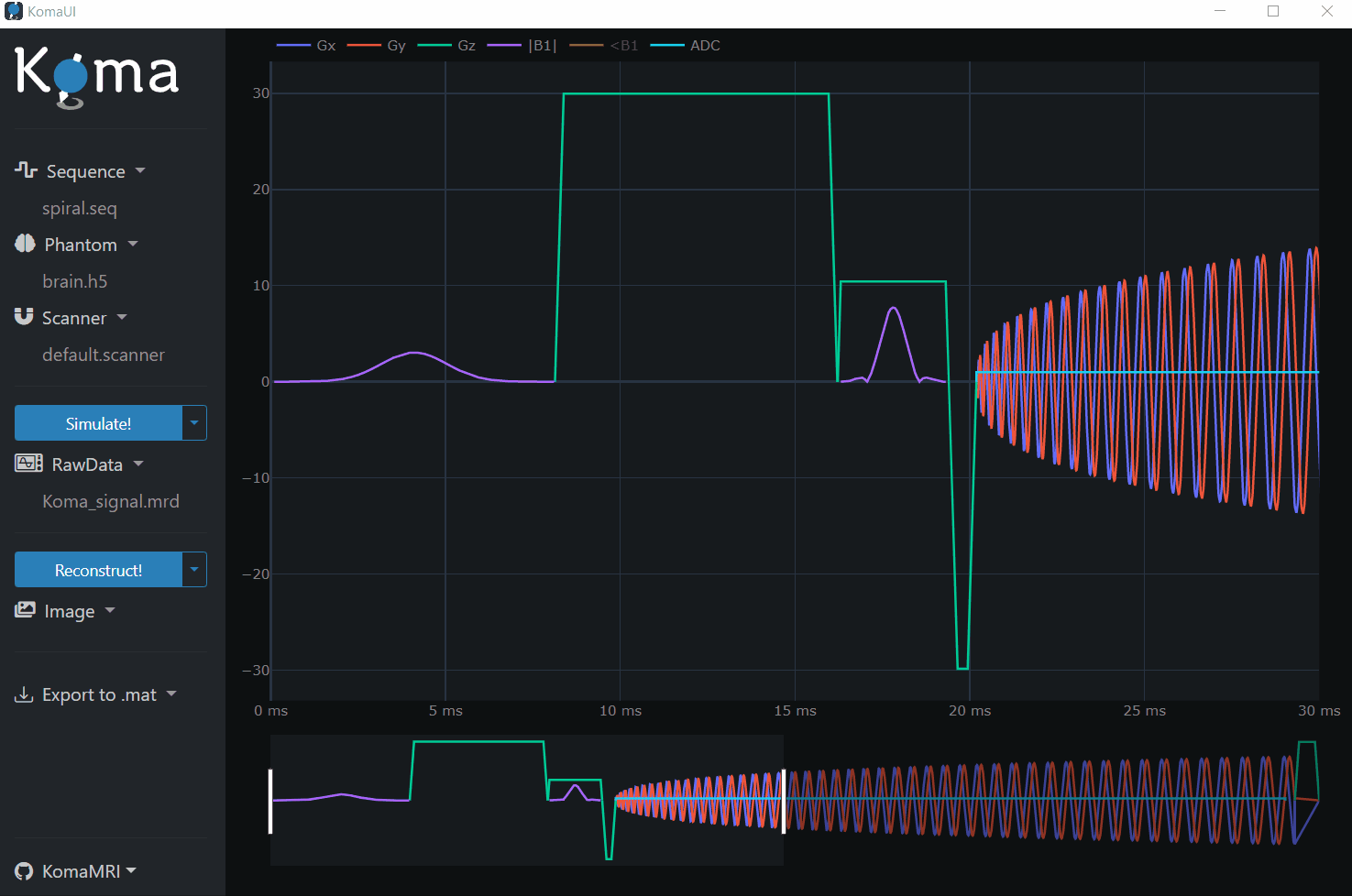This section provides a comprehensive guide on using the User Interface of the KomaMRI package and delves into the internal processes that occur during interaction. By the end of this section, you will be equipped to execute a complete workflow even without any prior programming experience.