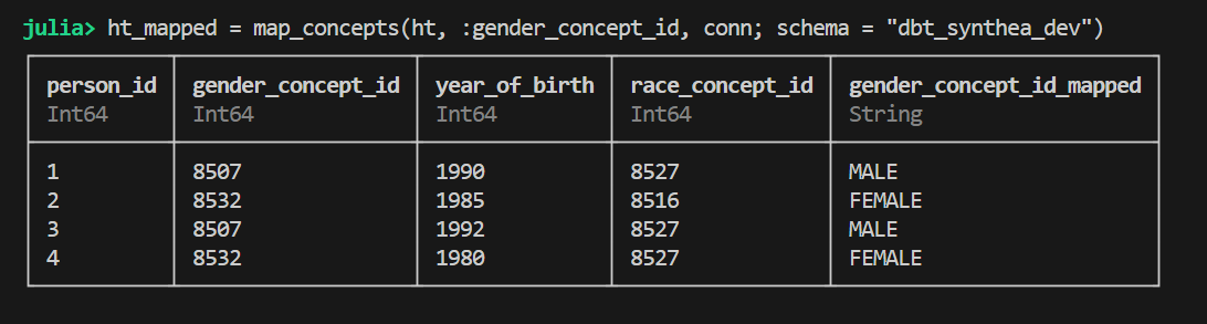 ht_mapped = map_concepts(ht, :gender_concept_id, conn; schema = "schema_name")